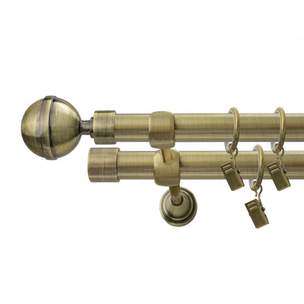 Karnisz Złoto antyczne podwójny fi 19- Kula lux