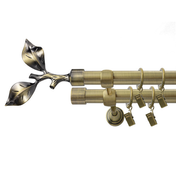 Karnisz Złoto antyczne podwójny fi 19- Liść róży