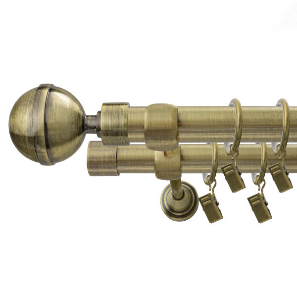 Karnisz Złoto antyczne podwójny fi 25+19- Kula lux