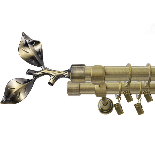 Karnisz Złoto antyczne podwójny fi 25+19- Liść róży