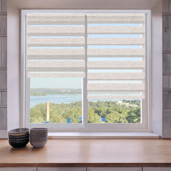 Roleta dzień-noc na wymiar to nowoczesne i praktyczne rozwiązanie do każdego wnętrza. Dzięki naprzemiennym pasom materiału umożliwia płynną regulację nasłonecznienia – od lekkiego przyciemnienia po całkowite zaciemnienie.