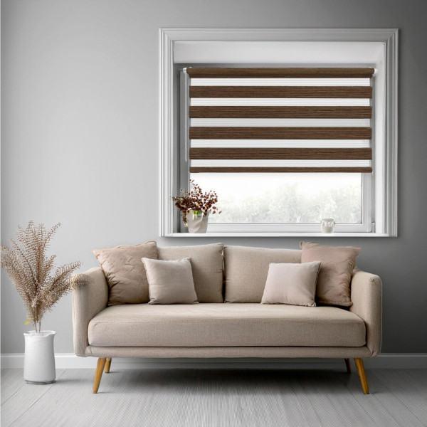 Roleta dzień-noc na wymiar to nowoczesne i praktyczne rozwiązanie do każdego wnętrza. Dzięki naprzemiennym pasom materiału umożliwia płynną regulację nasłonecznienia – od lekkiego przyciemnienia po całkowite zaciemnienie.