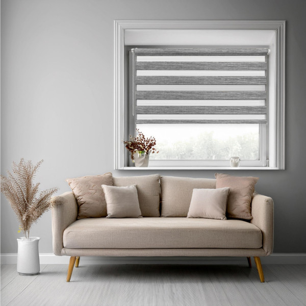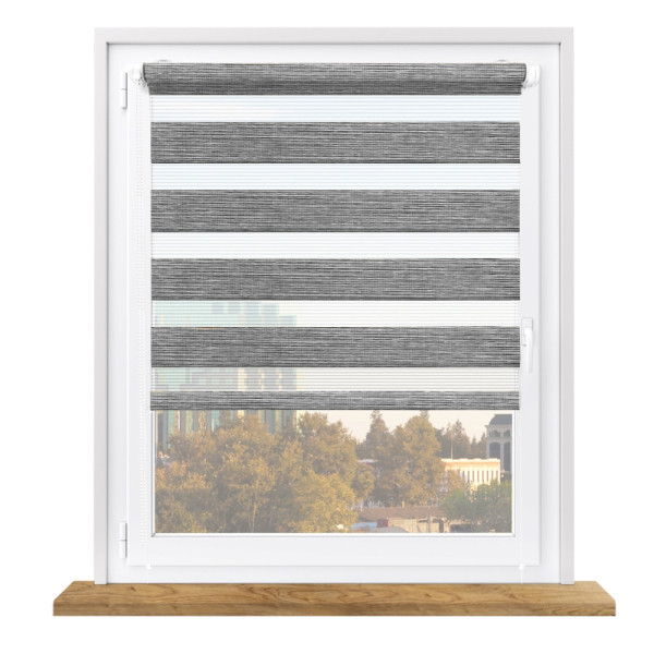 Roleta dzień-noc na wymiar to nowoczesne i praktyczne rozwiązanie do każdego wnętrza. Dzięki naprzemiennym pasom materiału umożliwia płynną regulację nasłonecznienia – od lekkiego przyciemnienia po całkowite zaciemnienie.