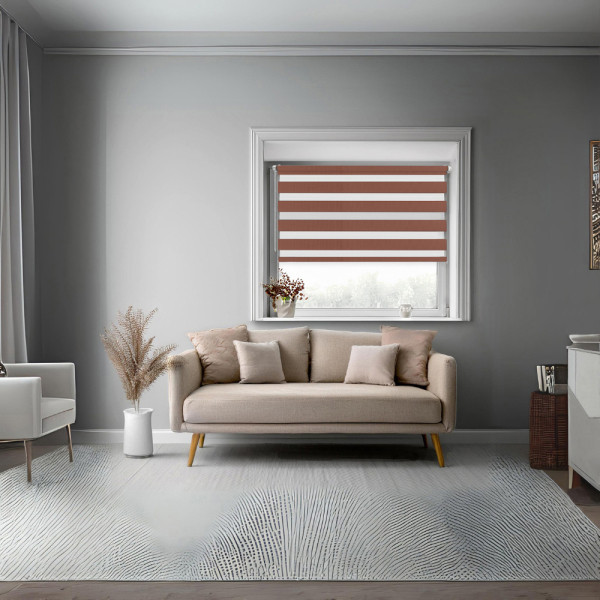 Roleta dzień-noc na wymiar to nowoczesne i praktyczne rozwiązanie do każdego wnętrza. Dzięki naprzemiennym pasom materiału umożliwia płynną regulację nasłonecznienia – od lekkiego przyciemnienia po całkowite zaciemnienie.