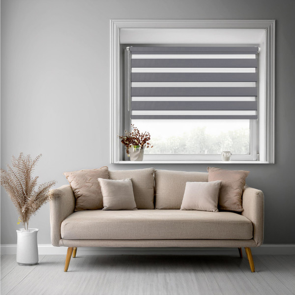 Roleta dzień i noc na wymiar z napinaczem – ciemny szary