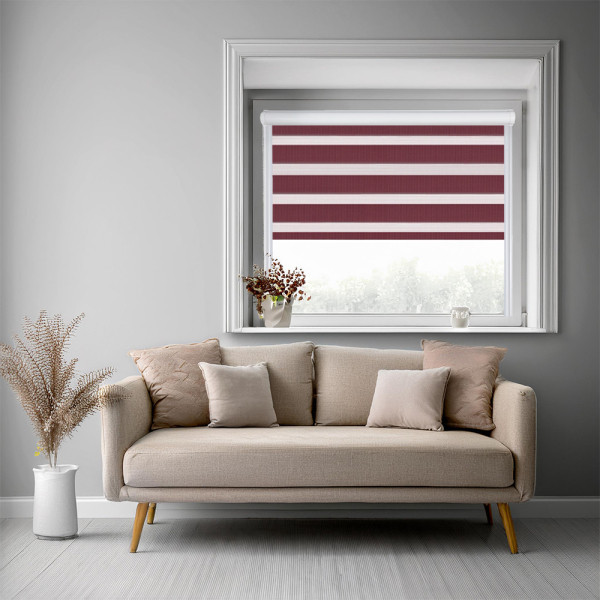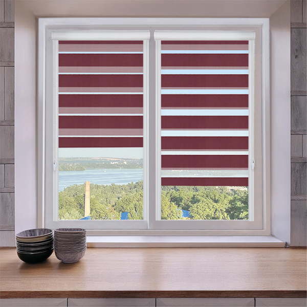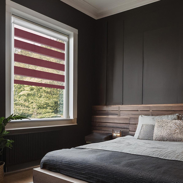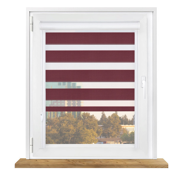 Roleta dzień i noc w kasecie aluminiowej z prowadnicami na wymiar – bordowa