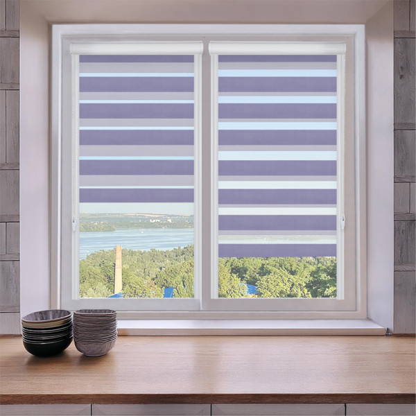 Roleta dzień i noc w kasecie aluminiowej z prowadnicami na wymiar – fioletowa