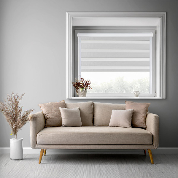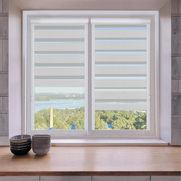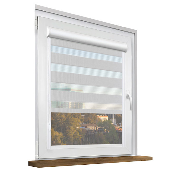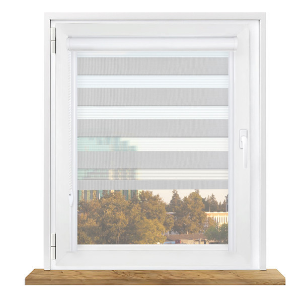 Roleta dzień i noc w kasecie aluminiowej z prowadnicami na wymiar – jasny szary