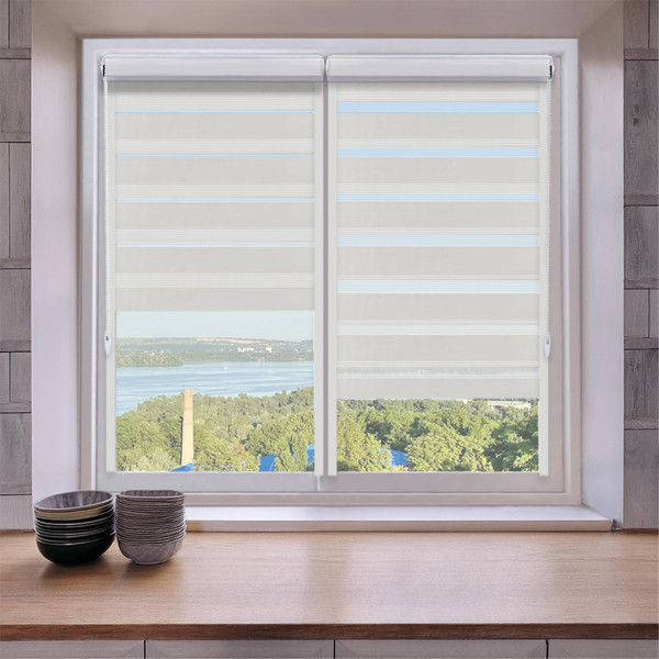 Roleta dzień i noc w kasecie z prowadnicami na wymiar – ecru