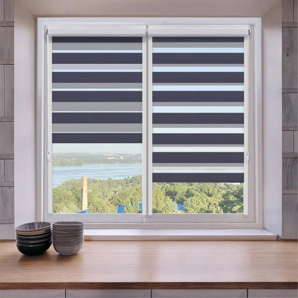 Roleta dzień i noc w kasecie z prowadnicami na wymiar – granatowa