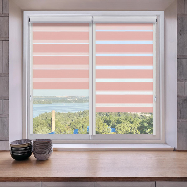 Roleta dzień i noc w kasecie z prowadnicami na wymiar – pudrowy róż