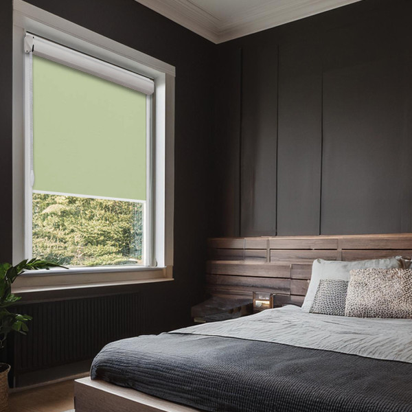 Roleta zaciemniająca termiczna w kasecie z prowadnicami na wymiar – jasno zielona
