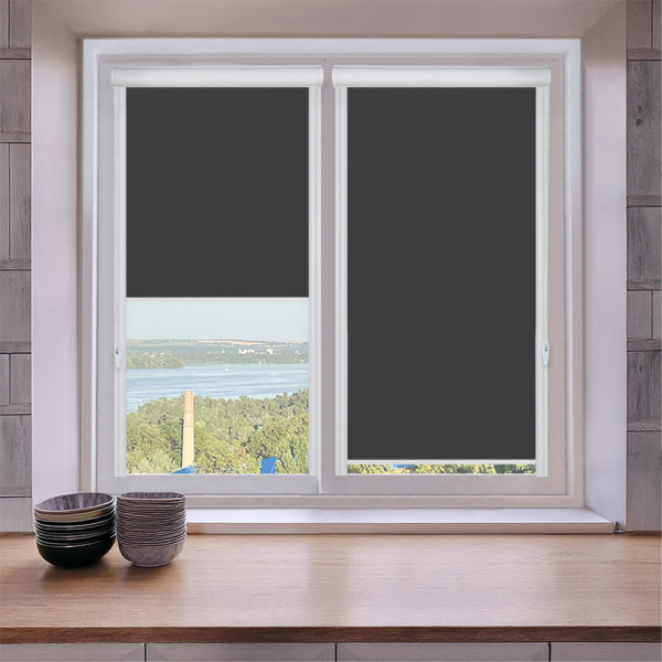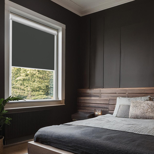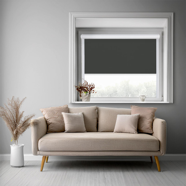 Roleta zaciemniająca w kasecie aluminiowej z prowadnicami na wymiar – grafitowa