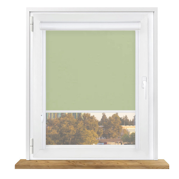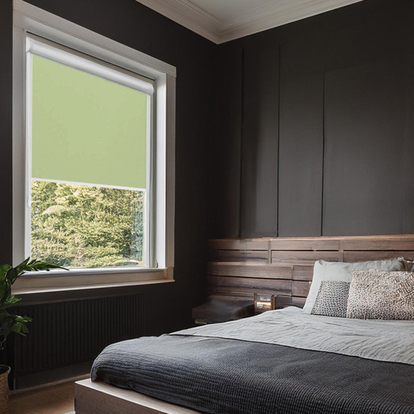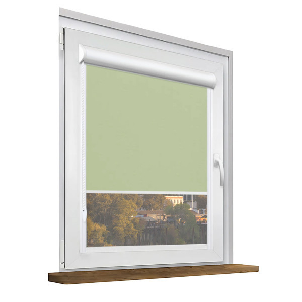 Roleta zaciemniająca w kasecie aluminiowej z prowadnicami na wymiar – jasno zielona