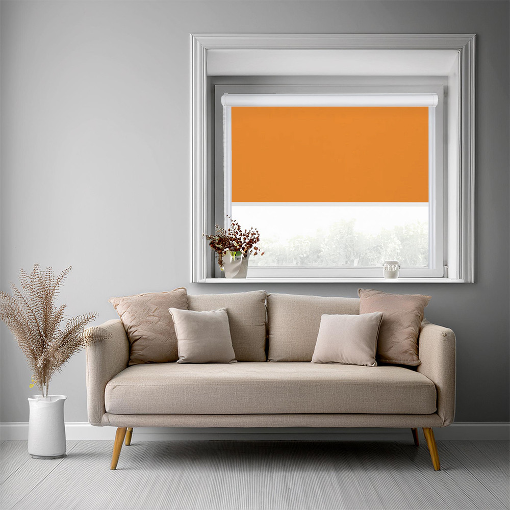 Roleta zaciemniająca w kasecie aluminiowej z prowadnicami na wymiar – pomarańczowa