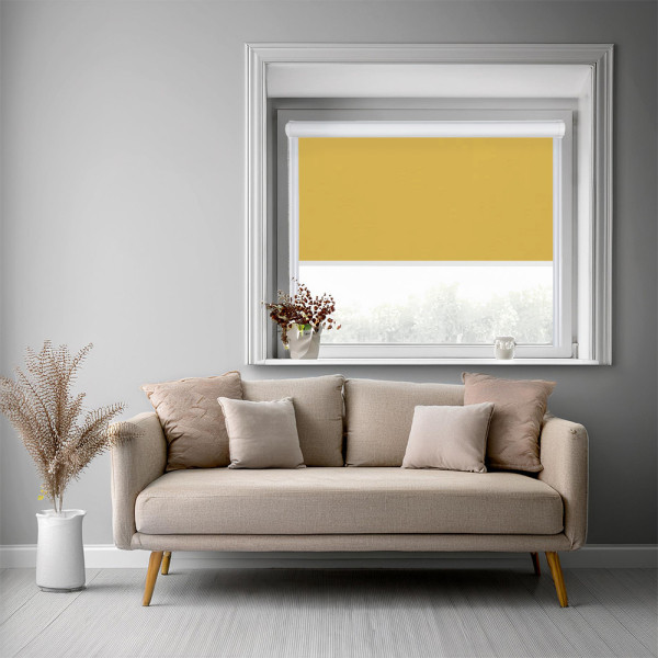 Roleta zaciemniająca w kasecie aluminiowej z prowadnicami na wymiar – żółta